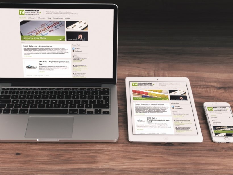Innerhalb weniger Wochen entstand die neue Website für Thomas Hunter PR + Kommunikation mit integriertem Blog und Responsive-Design-Variante für Smartphones.