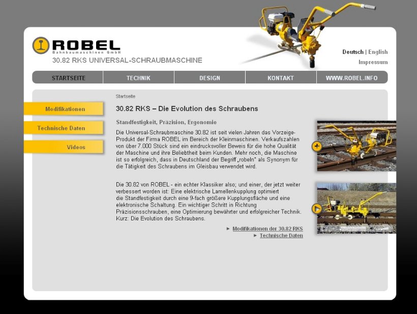 Die Besonderheiten dieser neuen Maschine sollten ausführlicher als andere Maschinen auf der Robel-Konzern-Website kommuniziert werden. Die Innovationen und Vorteile dieser durch die Design-Agentur "Kiska" völlig neu und bedienerfreundlich gestalteten Maschine stehen im Vordergrund.