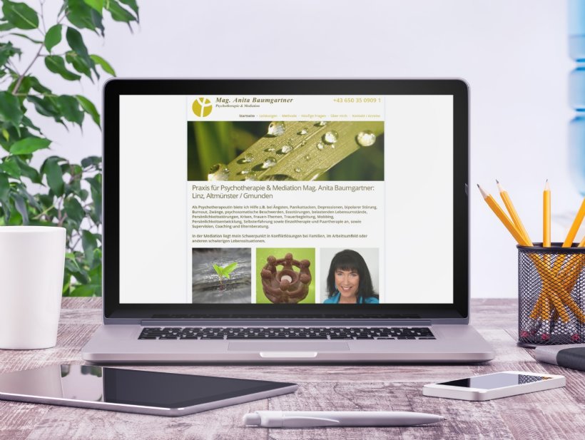 Die neue Website für eine Psychotherapeutin in Linz und Altmünster punktet mit von vornherein mobilfreundlichem Design.