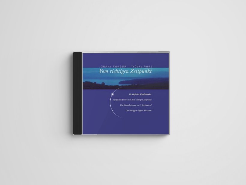 Diese umfangreiche CD-ROM basiert auf dem Standardwerk "Vom richtigen Zeitpunkt" - einem Buch der Erfolgsautoren Johanna Paungger und Thomas Poppe, das vor Jahren den "Mond-Boom" ausgelöst hat und sich seither in den deutschen Bestsellerlisten findet und in unzählige Sprachen übersetzt wurde.