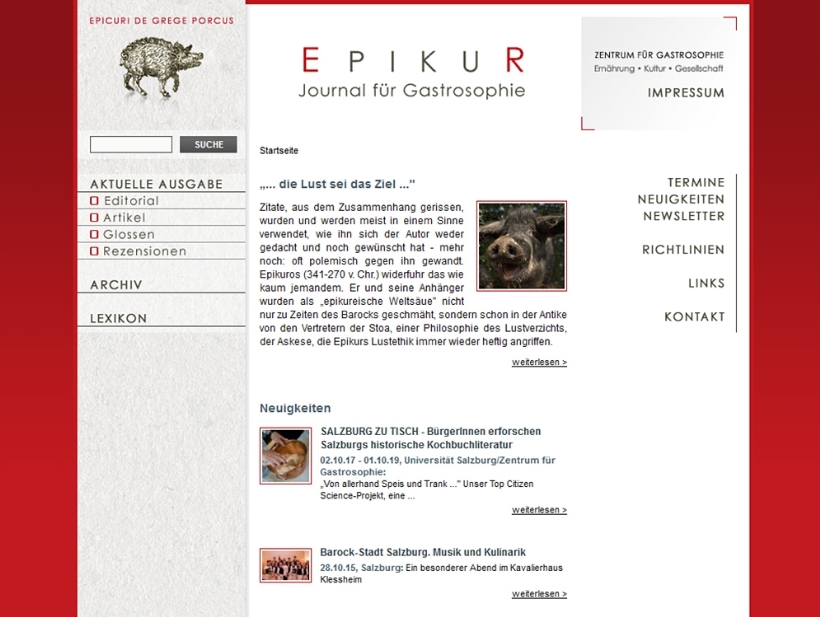 Ergänzend zum Studiengang "Gastrosophie" publiziert das Zentrum für Gastrosophie der Universität Salzburg eine Fachzeitschrift, die nur im Internet existiert.